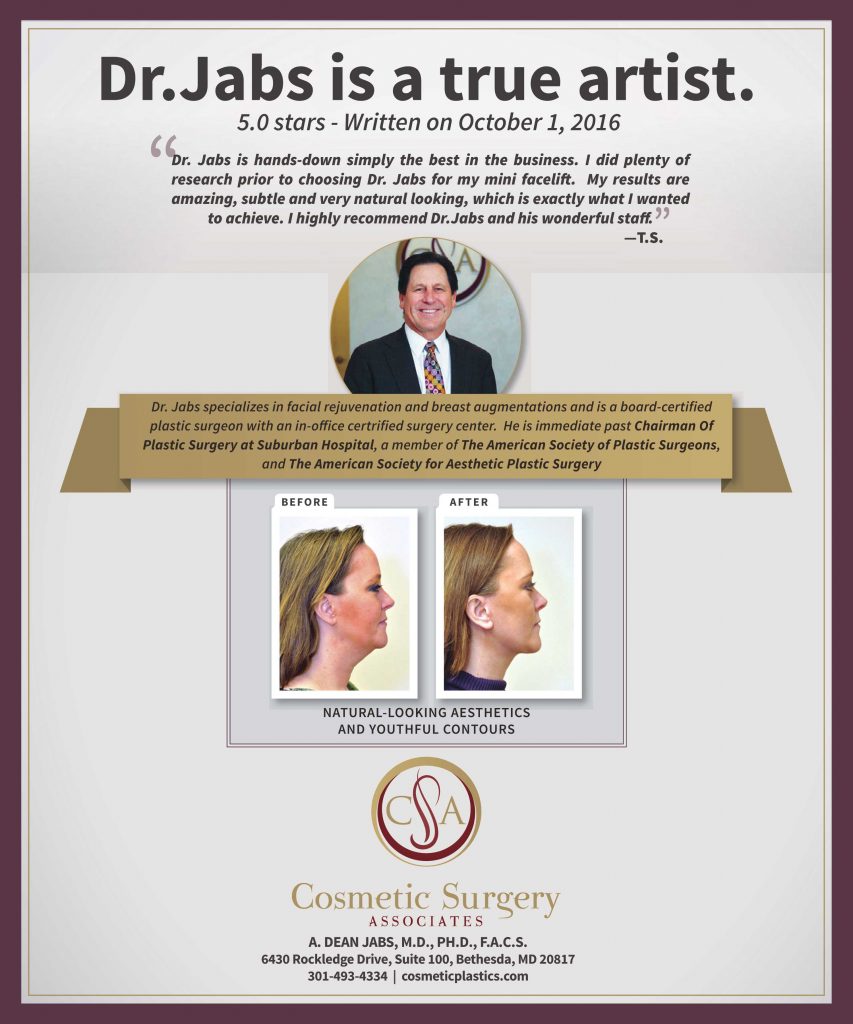 PRO TIP: When choosing a doctor, prospective patients should look for a board certified plastic surgeon with years of experience and satisfied patients as shown by reviews, says A. Dean Jabs, MD, PhD, of Cosmetic Surgery Associates. Complete transparency and open communication are key, he adds, to a happy doctor-patient relationship and should be expected.